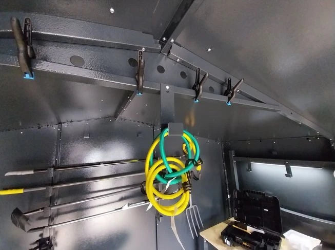 Our Asgard metal storage units are designed to work seamlessly with our heavy-duty metal hook sets. These hooks are durable and crafted from the same weather-resistant steel as our sheds, making them perfect for hanging bulky items out of reach or keeping delicate items off the ground. By adding these hooks to your shed, you can maximise your storage space, keep your shed organised, and easily locate your belongings. With these hooks, the possibilities for storage are endless!
