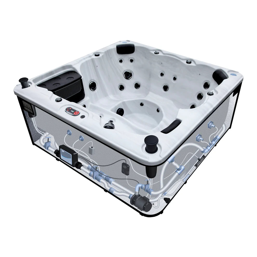 This luxurious model boasts powerful therapeutic seats that offer a rejuvenating hydro-massage for your entire body. With its spacious design, it comfortably accommodates up to 6 adults, ensuring everyone can enjoy its benefits.